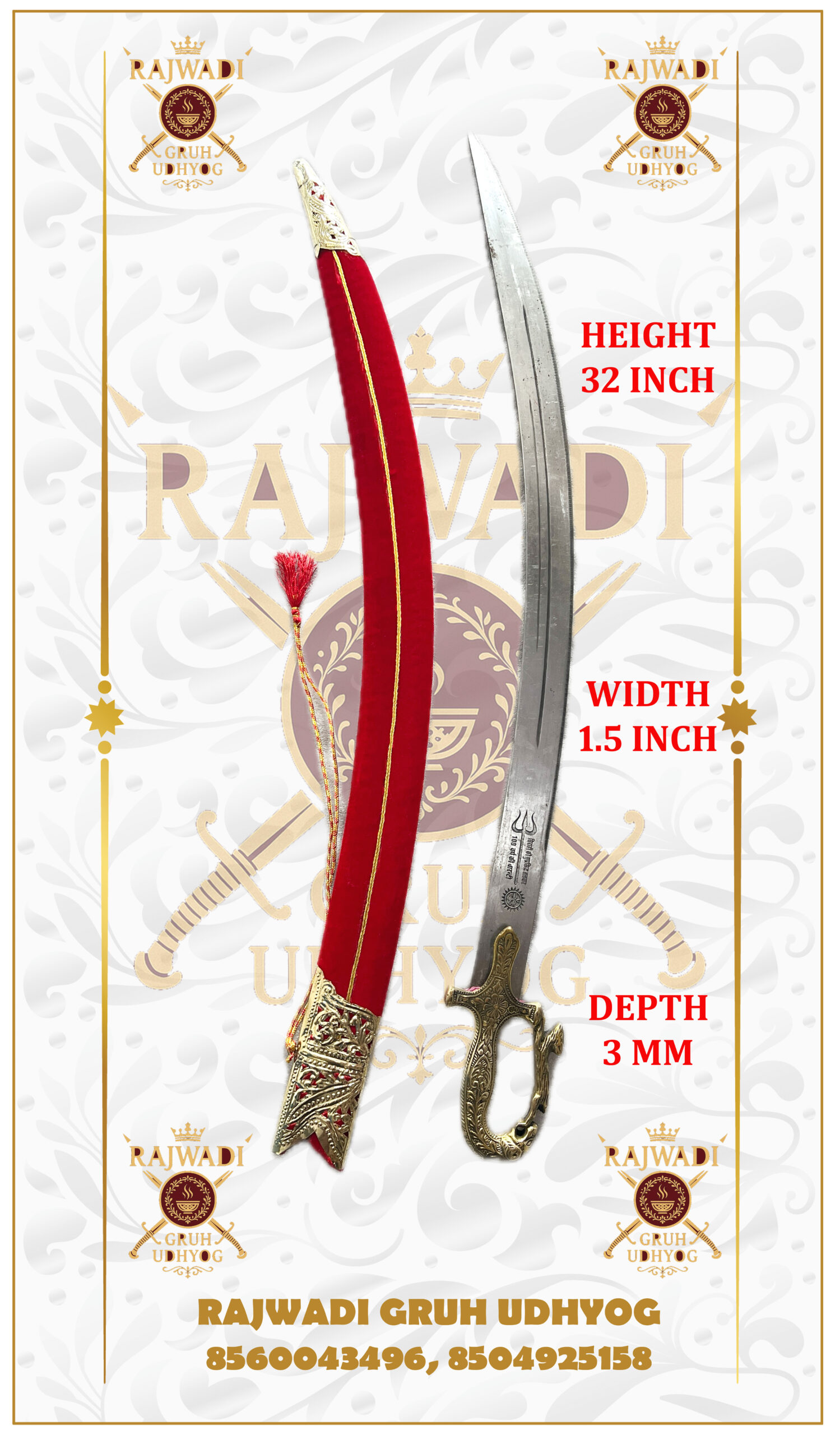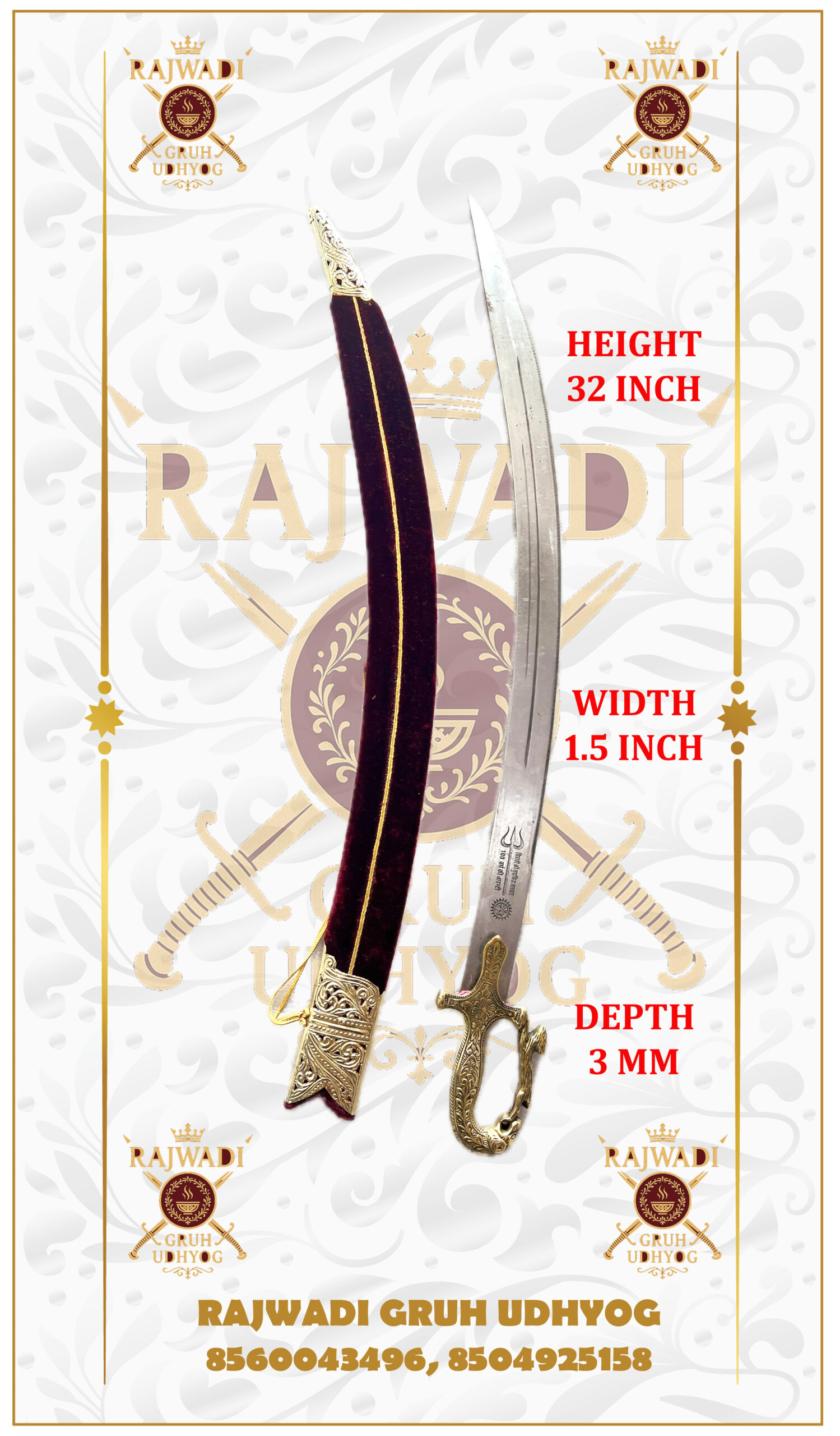 This sword exudes a regal and traditional charm, making it an impressive decorative and ceremonial piece. The sheath, crafted with rich maroon velvet, gives it a luxurious appeal, while the intricate golden embellishments add a royal touch that instantly catches the eye. The ornate design on the metalwork is detailed and elegant, reflecting fine craftsmanship. Packing is also good and timely delivered and Overall Communication is so good. Than you for this..